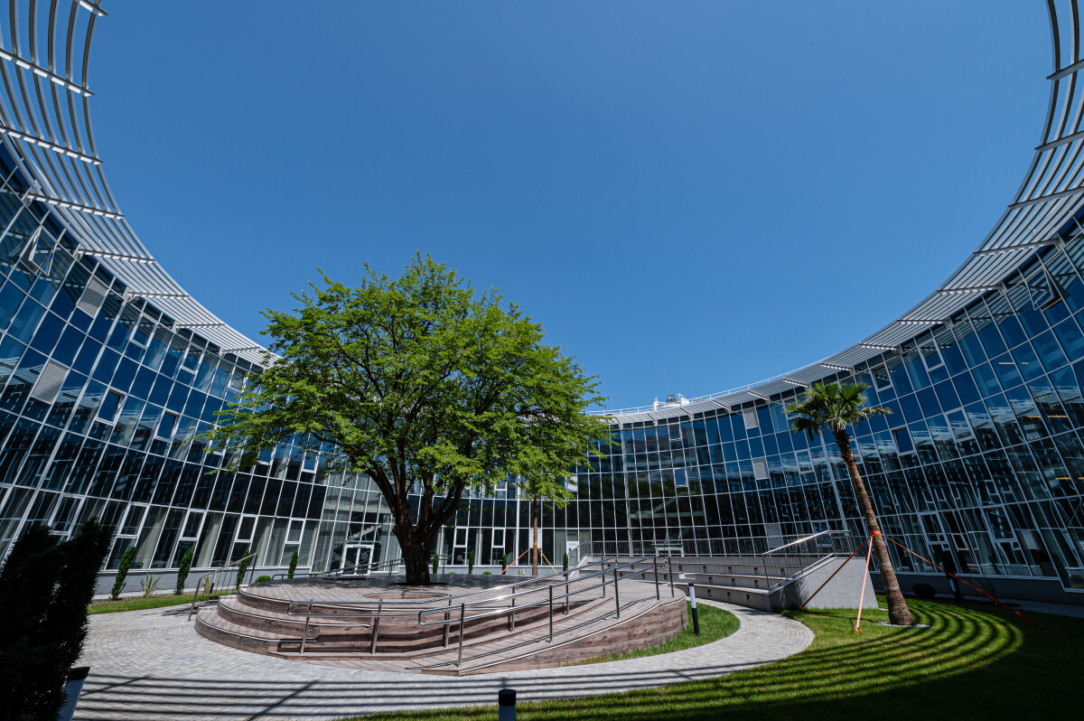Новое пространство было отреставрировано в мае 2023 года. Атриум создавался специально для участников программ и включает в себя сцену под открытым небом, амфитеатр со зрительскими местами, декоративные дорожки для прогулок и специализированное освещение. Изначально в этом пространстве планировали проводить только учебные и досуговые мероприятия: лекции, открытые встречи с гостями, мастер-классы. После завершения строительства «Сириус» предоставил сцену и для выступлений юных музыкантов.