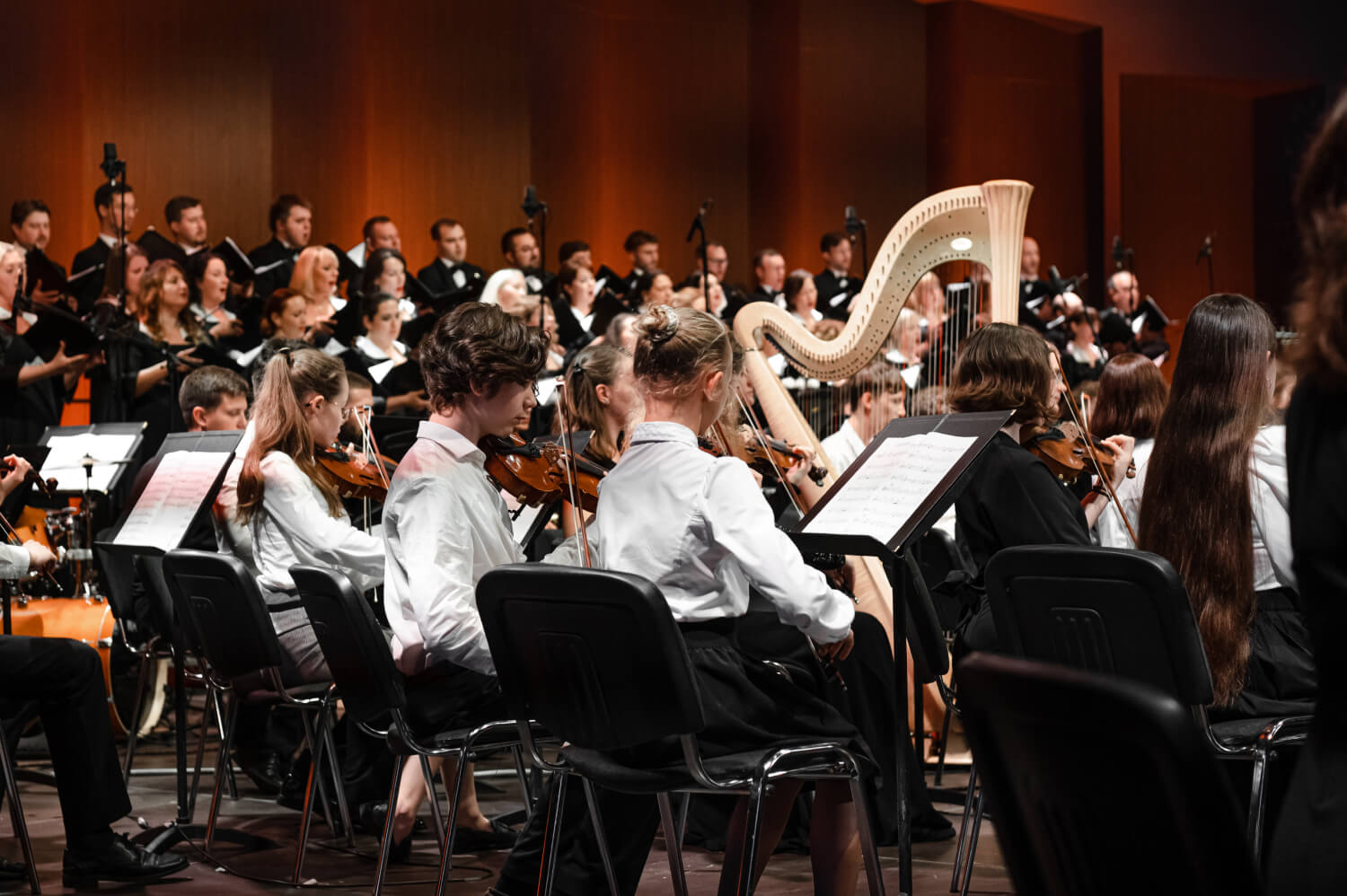 Благодаря наставничеству солистов РНМСО за неделю школьники освоили ключевые навыки работы на сцене и подготовились к выступлению с известным коллективом. 8 июня оркестр исполнил для гостей федеральной территории мировые шедевры: «Ученик чародея» — скерцо для оркестра Поля Дюка, отрывок из оперы «Сказка о царе Салтане» Николая Римского-Корсакова, а также совместно со знаменитым скрипачом Павлом Милюковым Концерт № 1 для скрипки с оркестром Макса Бруха.